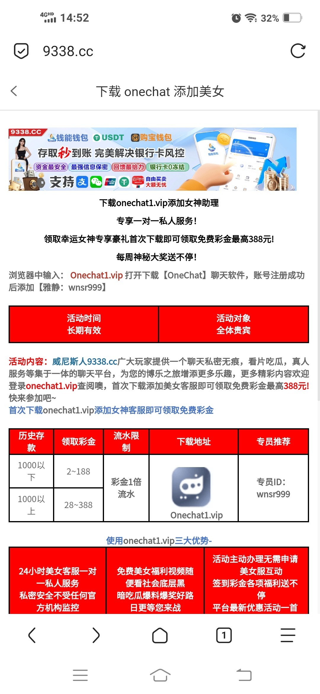 充值过去下载onechat聊天软件申请彩金,我之前冲了38+38,去申请送了10块提了100秒到 网址9338.cc