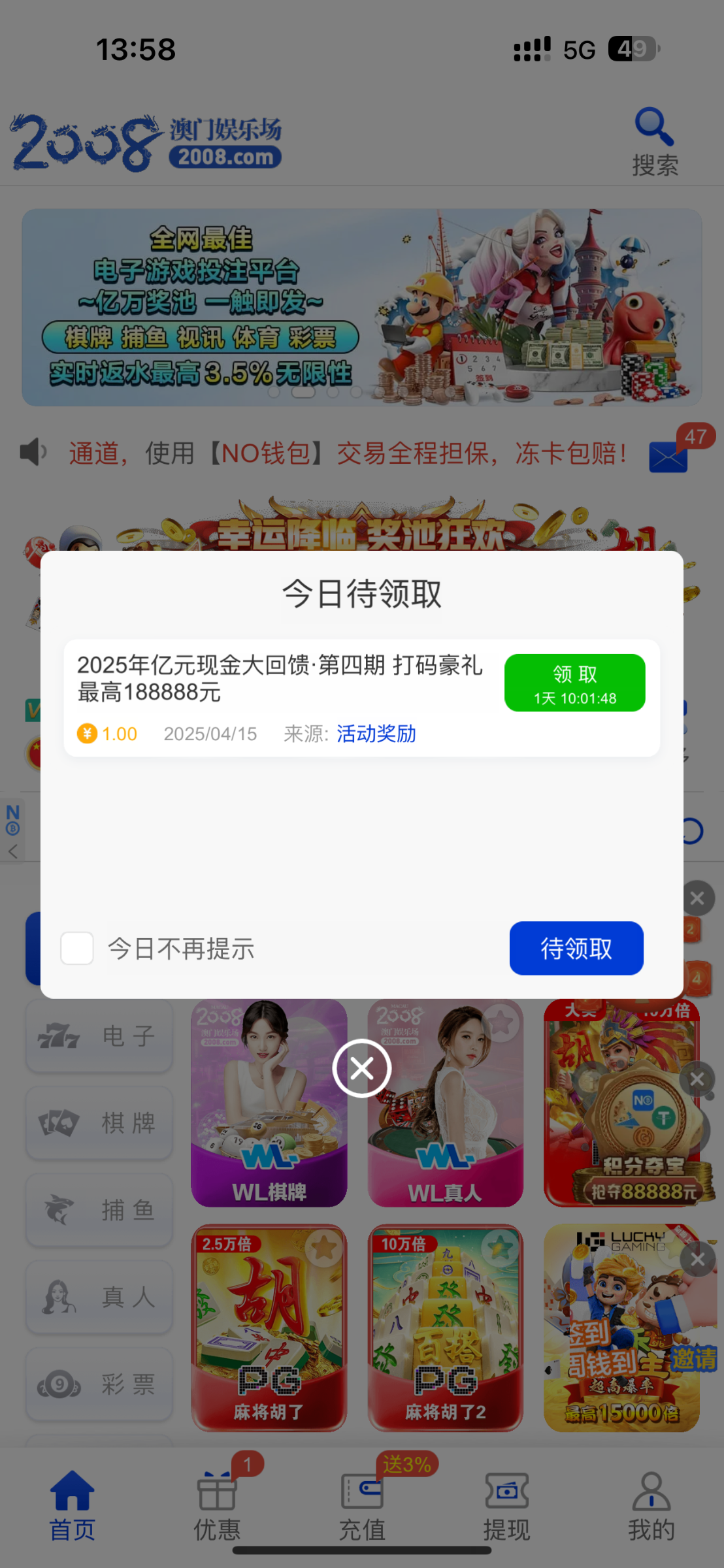 【澳门娱乐场2008】历史投注彩金