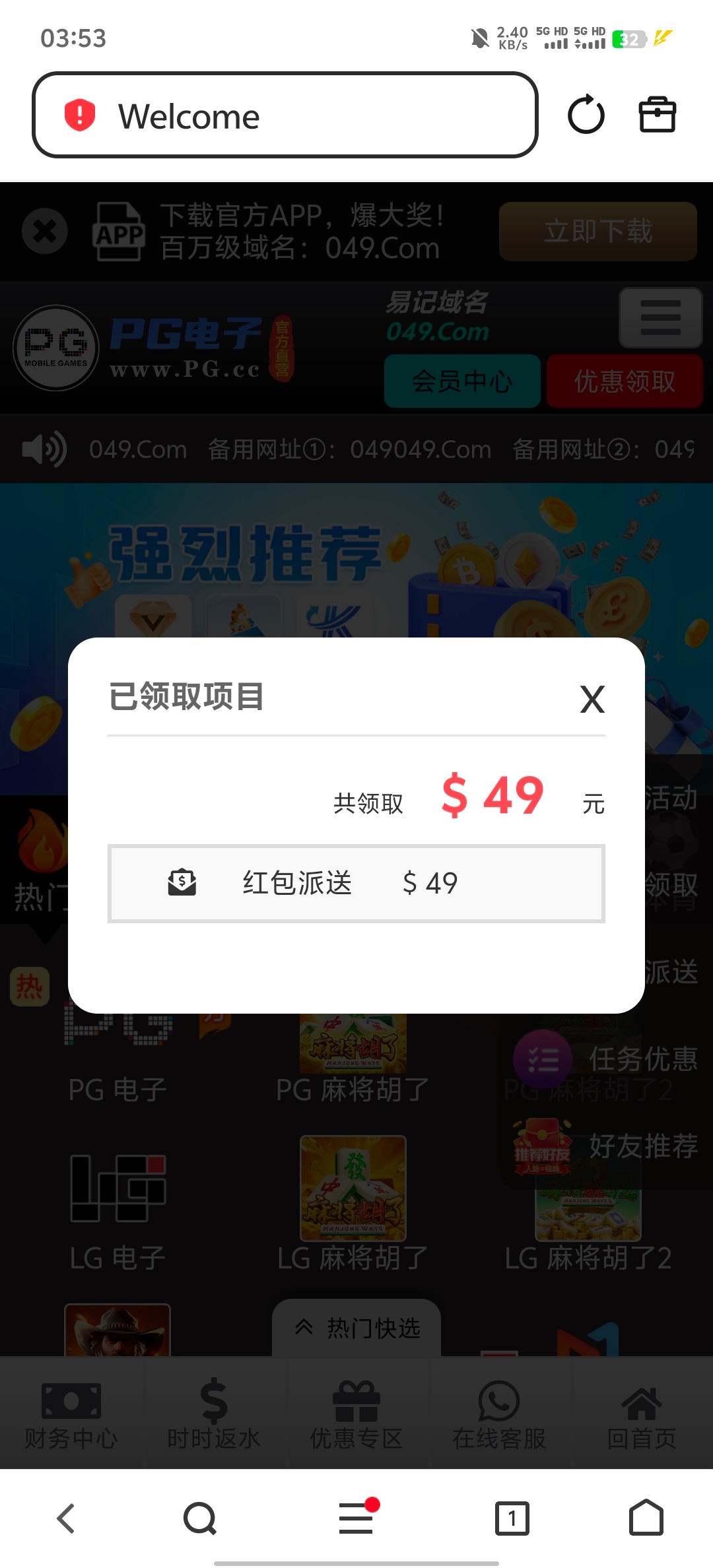 上去有49,问客服说是10周年历史注册彩金,没接到电话纯碰的