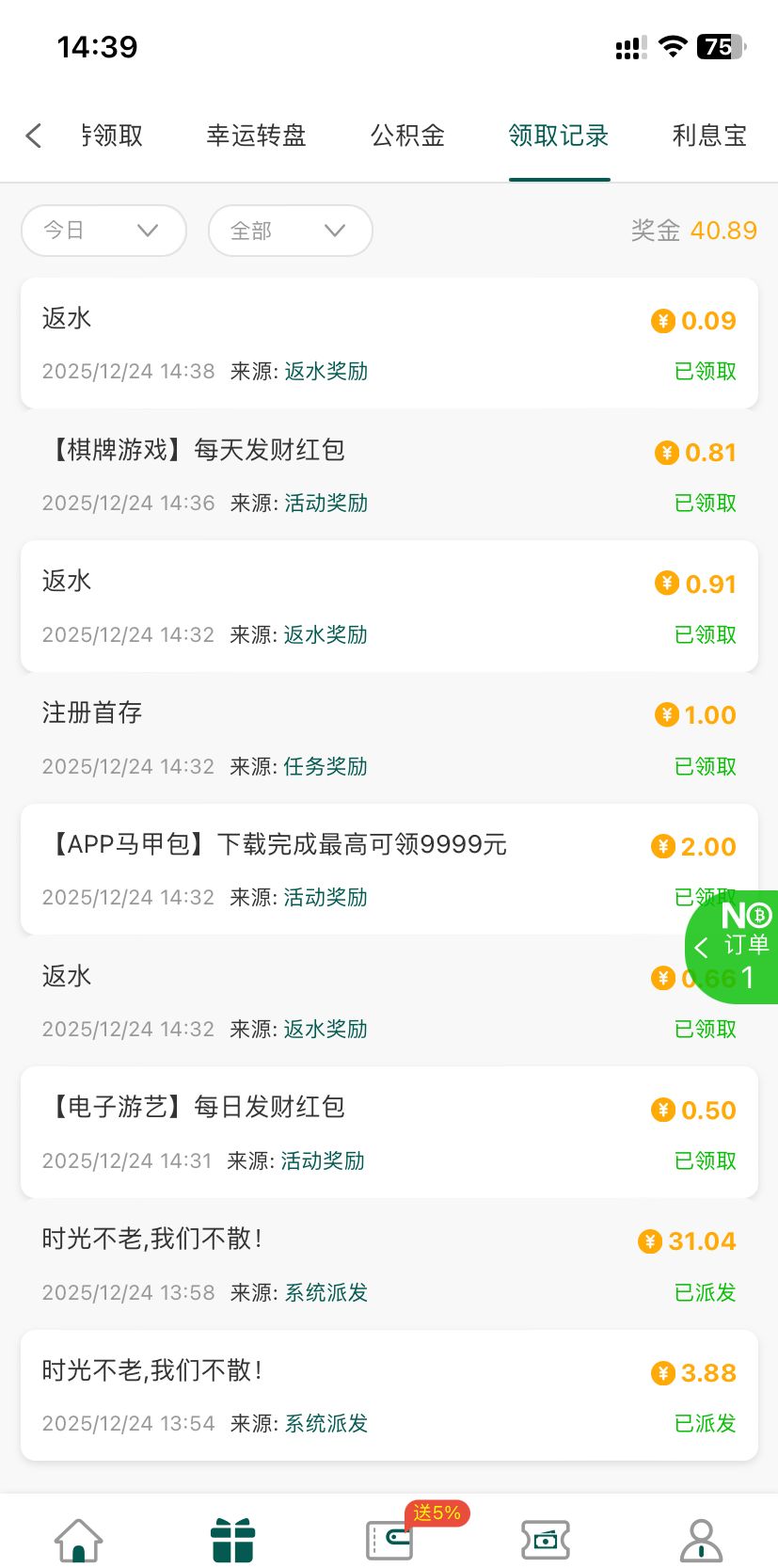 几个月没登录有登录彩金 那个三十块钱的翻倍彩金任意充值就可以领,我充了十直接领到了。以前充过一百的还可以领那个马甲包的彩金