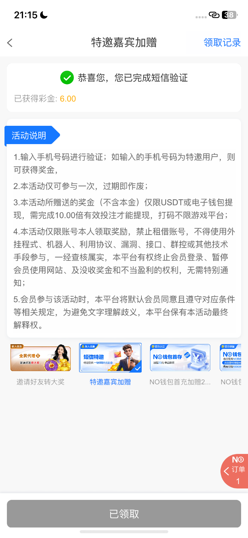 进去短信验证六块钱,我打了两百出款成功