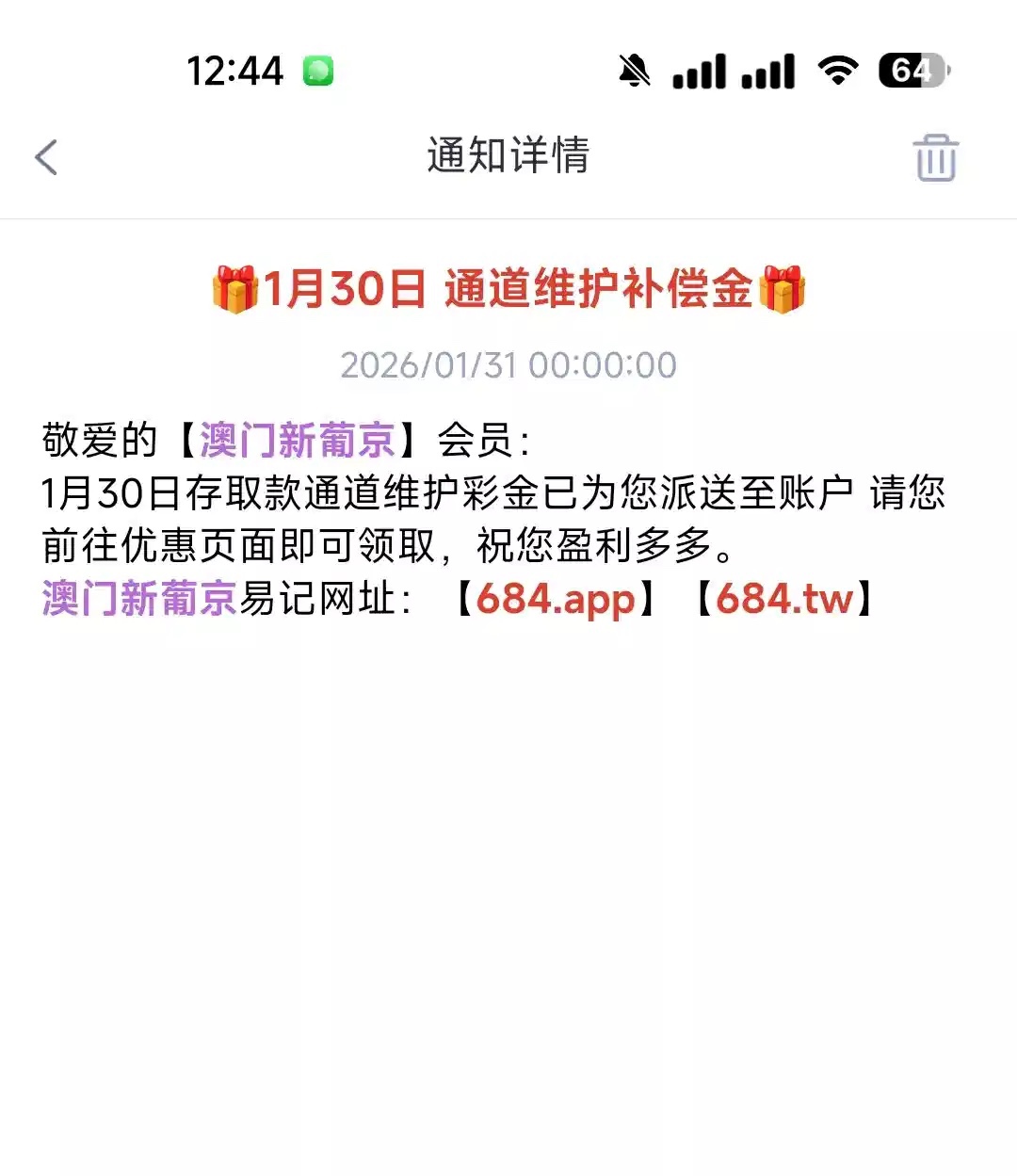 【葡京684-通道维护彩金】