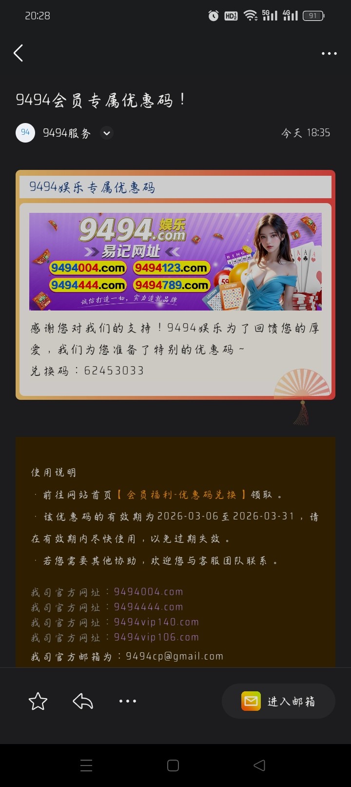 【9494娱乐】邮箱优惠码彩金