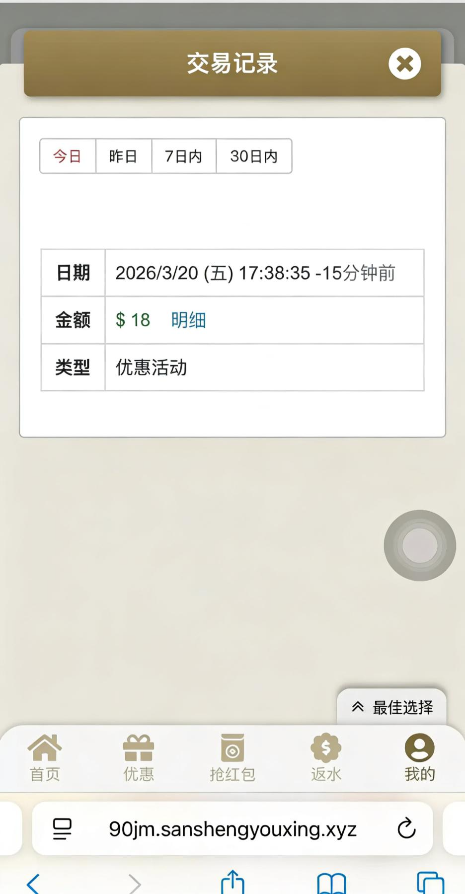 接到电话送的,漏接电话的登录看看有没有