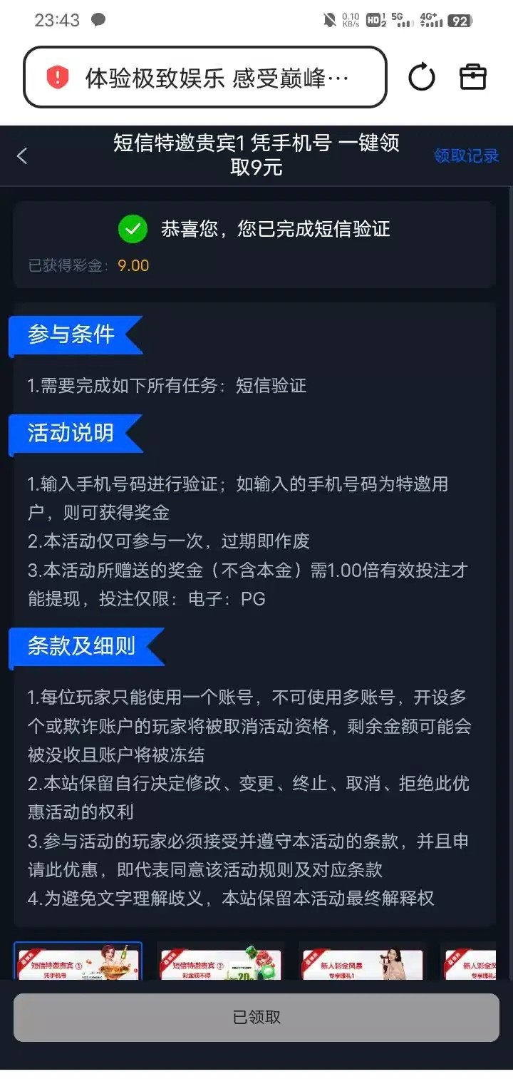 是号码就送 注册名字随便填 反正出款也是虚拟不查 找到新人特邀第一条验证手机秒到 限制pg我领几两个号没打出来