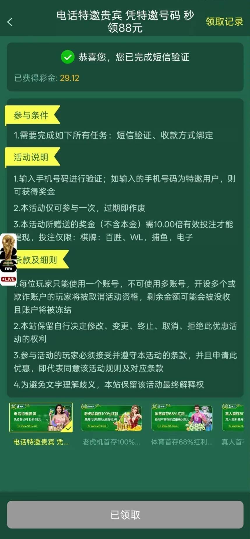 【bet2213】电话特邀自助彩金29